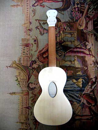 ラプレヴォット製作工程 ![]() 表板のヨーロッパ・スプルース ![]() ![]() ほぼ出来上がった響板 動画の紹介 サウンドホール切り抜き サウンドホール縁飾り溝彫り サウンドホール縁飾り接着 響板力木接着面仕上 ![]() 裏板のメープル材(一枚板)。通常は一般的な2枚接ぎです。 これからあのヴァイオリンのような美しい膨らみを削り出す。 ![]() 裏板は表側の膨らみから取りかかる。鑿(ノミ)で荒削りをし、カンナとスクレーパーを使ってなめらかに仕上げていく。 ![]() 裏板のふくらみが完成。このあと内側を削り、厚みを出す。 響版とのバランスをとるには、どうしても熟練が必要。 動画 その1 その2 ![]() ヘッドの加工 ![]() ネックとヘッドの接合 ![]() 横板を曲げる ![]() ブロックとライニング(のりしろ)の接着。 ![]() ライニングのぜい肉を削り取る。動画参照下さい。 ![]() 裏板の仕上げにとりかかる。ノミでタッピングをしながら削り込んでいく。 動画 その1 その2 ![]() 裏板完成。 裏板をタッピングし反応をみるときはネックの材質、表板の具合などできるだけ多くの情報を頭の中に入れ、出来上がりをシミュレーションする。 表板、裏板の厚みを仕上げる際は、カリパーなど測定道具に頼らず、タッピング音で判断する。何ミリの厚みになったというのはあくまでも結果にしかすぎないので、これに振り回されないように気を付ける。オリジナルをコピーするときには特に気を付けたほうがよい。 ![]() ラプレヴォットはヴァイオリンも作っていたためか、ネック・ジョイントのホゾはストレートになっている。一般的に、この当時のミルクール製のギタ-はホゾ組みではなく、ボディとネックはベタ貼りされているものが多い。ラコートもそうである(参照)。 ![]() ネックの接着 ![]() ![]() この段階でこの楽器の性格はもう出来上がっている。 あとは、シミュレーションどおりに指板とブリッジを接着すれば、ほぼ完成。 ![]() 黒檀の縁飾り。私は3パーツに分けている。 ![]() 縁飾りの接着。 このように楔(くさび)で圧着する方法と、ゴムバンドや紐で縛る方法がありますが、どちらの方法にも一長一短があります。 ![]() 指板の接着 ![]() ブリッジの接着。 ブリッジを接着する場合、私はできるだけ弱い圧着で行うように心がけている。 その分、接着面の調整が厄介だがブリッジの仕上げには時間を惜しまない。 ![]() ネックを仕上げる。 この作業は指板のニカワが完全に乾いてから行なう。 ネックと指板は交互に少しずつ削り込んでいく。 ![]() 木地を仕上げた状態 ![]() ![]() ![]() ニスの下塗りを終えた状態。 今回は、赤みがかったこげ茶にしてほしい、という注文者からの要望により そのように仕上げていく。 まずは、薄いイエロー・セラックを数回塗る ![]() ![]() これは上記とは別色のセラックニスを 10数回塗ったもの ![]() ![]() まだまだ塗り重ねるが この段階でフレットを入れる このフレットは真鍮の板で、厚みは1mm 板フレットの仕上げ方はここを参照 ![]() ペグ、ブリッジ・ピン、エンドピンを作る 材質はコクタン。ペグ材は厚みを確保するために 別の木を貼り足している ![]() ペグの輪郭を削っていく ![]() 輪郭の出来上がり この後つまみの部分を仕上げる ![]() 出来上がり ![]() 完成 ![]() ![]() ![]() ![]() 質問などありましたら ご遠慮なくお問い合わせください 名刺ページ 製作工程動画YouTube 銀杏型サウンドホール製作工程 その他のラプレヴォット・タイプ ミルクール・タイプ製作工程 ラコート・タイプ製作工程 パノルモ・タイプ製作工程 Back Home |